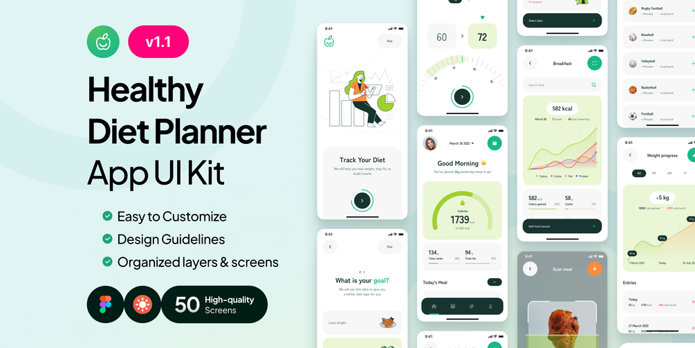 LifeFit - Healthy Diet Calory Counter App Figma UI Kit