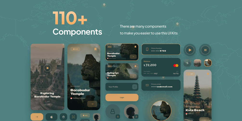 In this bundle, you'll get 4 UI Kits Travel & Tourism apps with more than 255+ Screens and 730+ Components worth over $120+ for only $47! · Click in here 👈