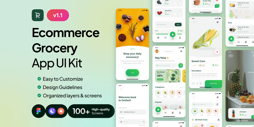 Grofast - Online Grocery Ecommerce App Figma UI Kit