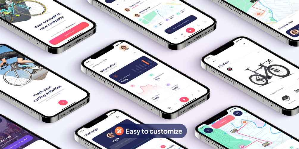 This app is created for everyone who wants to track their cycling activity, make an achievement, set a goal, group cycling with friends and challenge yourself with other athletes in international or local events. You can also use this UI Kit to make fitness app and other sports app.