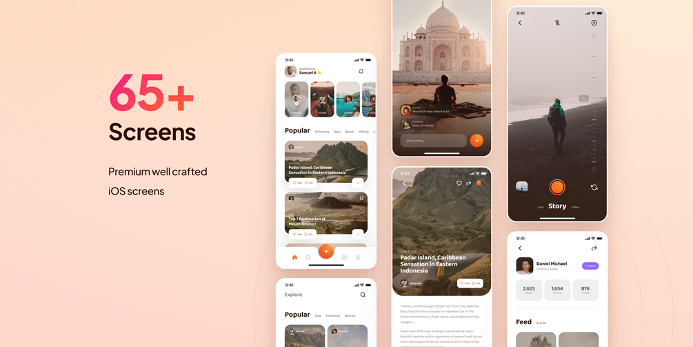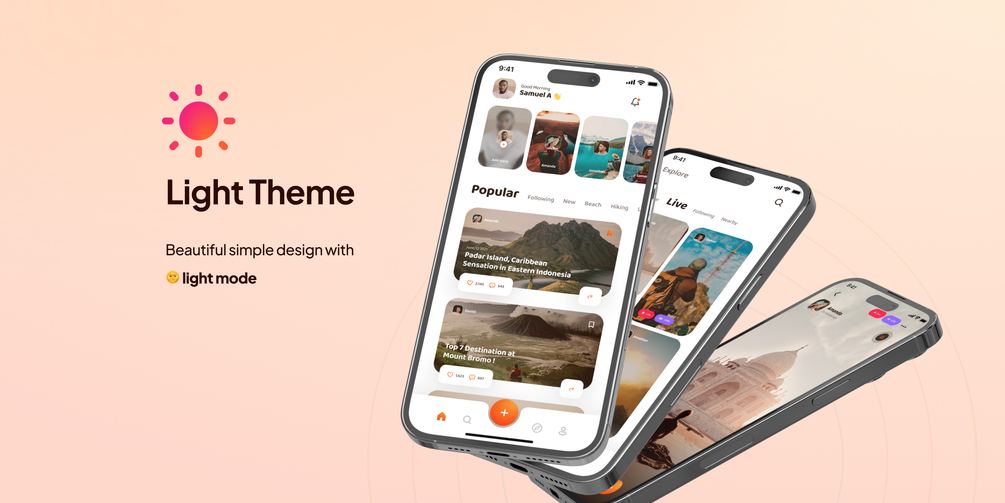 This app is created for everyone who love travelling and sheir their travel experience with travellers around the world. This UI Kit also has a bunch of features such as creating a blog for anything about travelling. You can also share your travel experience as a post, video, stories, live sessions with your follower and many more you can do in this beautiful UI Kit.