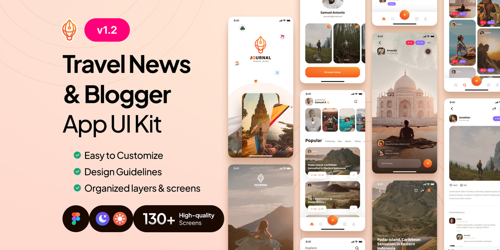 Journal - Travel Blog & News for Traveller App Figma UI Kit